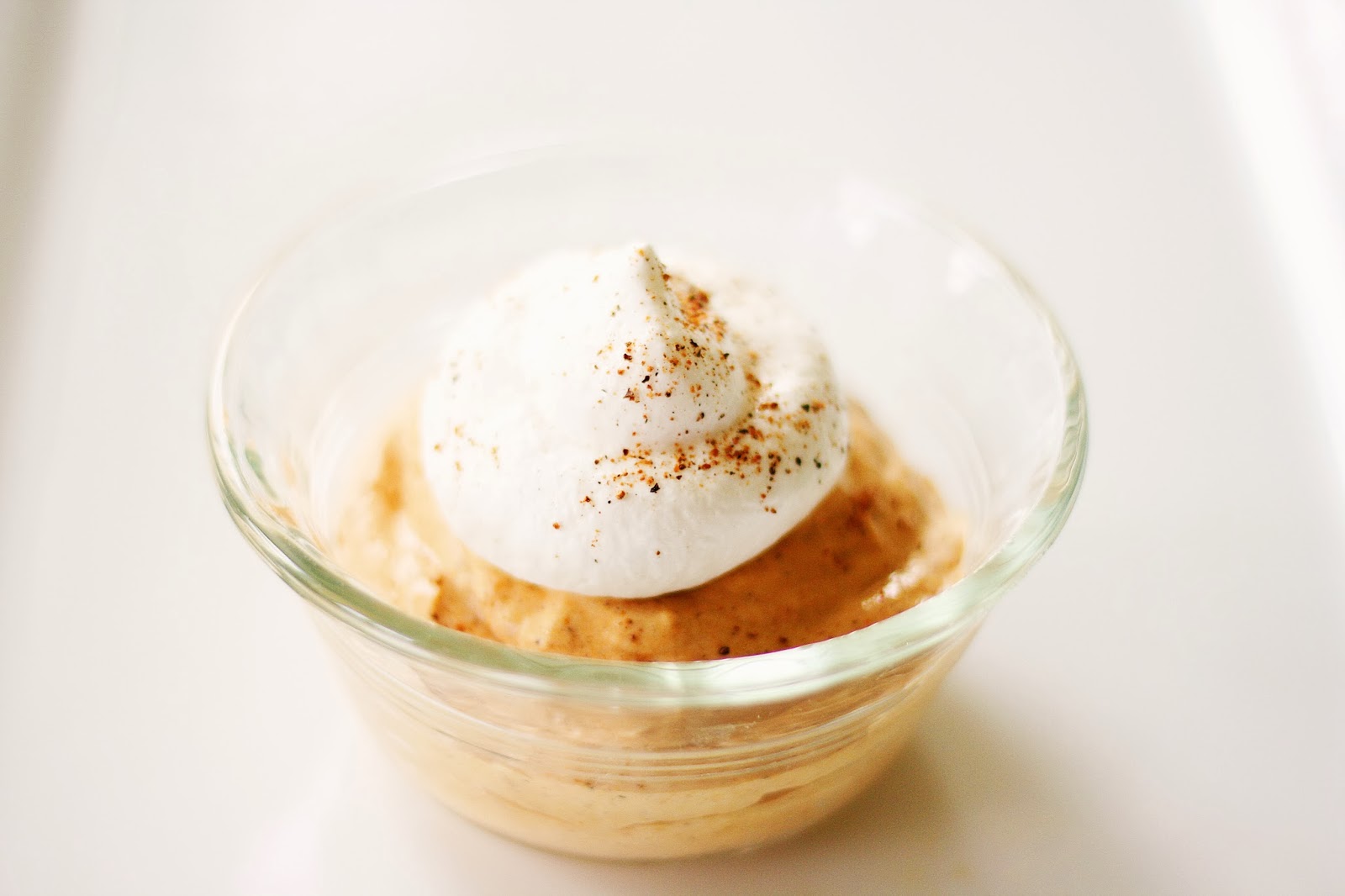 5. Before serving, top each dessert with 2 tablespoons of light whipped topping and sprinkle with ground nutmeg.
