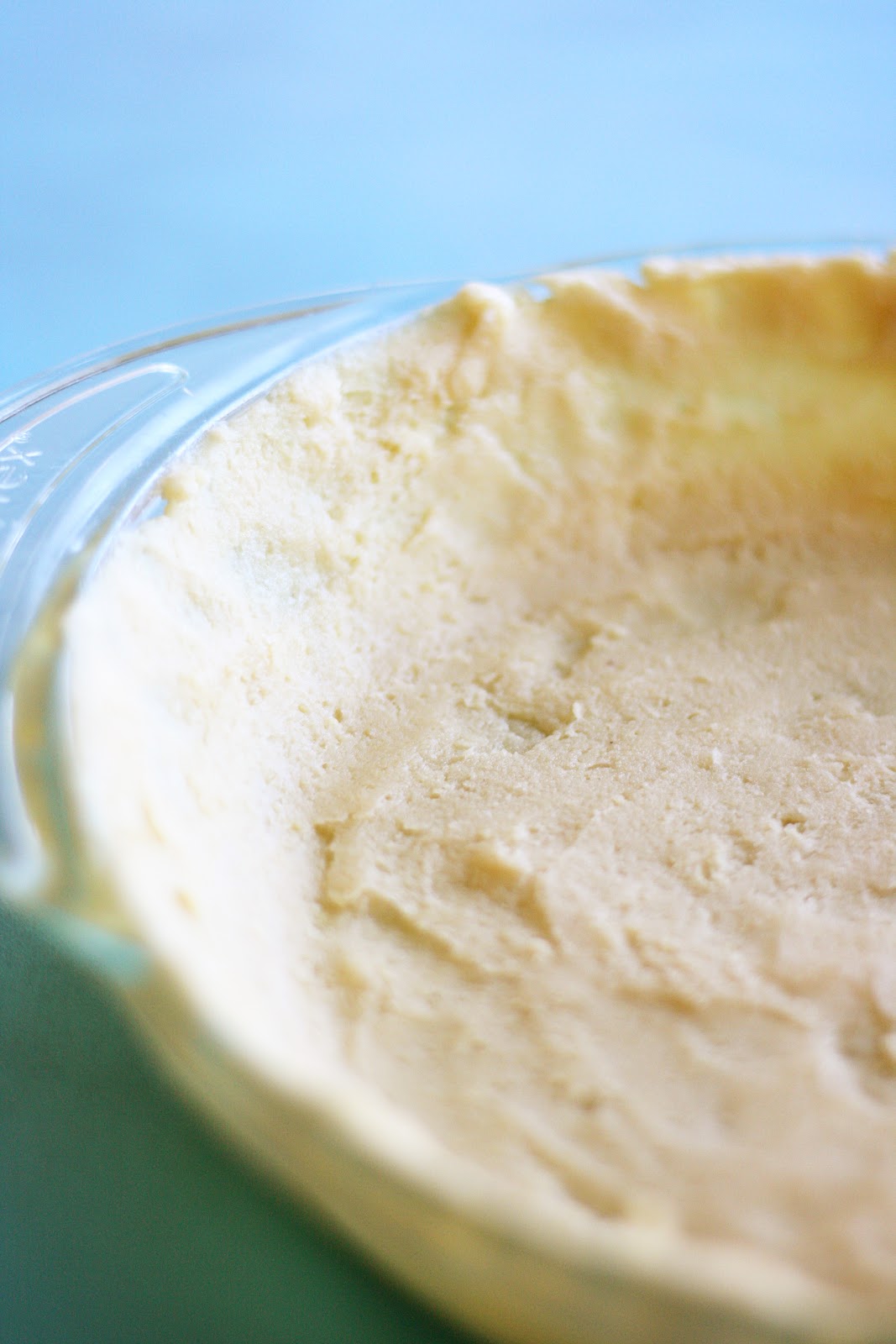 - Add the vinegar and water and continue to mix with the pastry blender until well combined. Throw it into your pie dish. Don't even bother trying to roll it out...it won't work. (unless maybe you use a whole bunch of flour, but obviously the point of this is trying to scale down the carbs.)